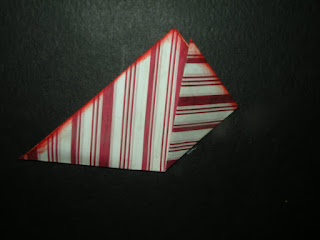 Fold the same pieces down to the right and left outside edge of the square. They will line up with the edges.